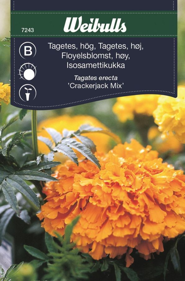 Ligulosa-gruppen. En hög tagetes med bollformade blommor i gula och orange nyanser. Plocka bort vissnade blommor så utvecklas nya blommor bättre. Så inomhus i såjord i mars-april. Så grunt. Lägg fröna horisontellt. Gror efter 7-14 dagar. Sätt om i plantjord när plantorna börjar trängas. Plantera utomhus när risken för nattfrost är över. Avhärda först genom att låta plantorna stå ute dagtid under någon vecka och sedan dygnet runt några dagar. Mycket frostkänslig.