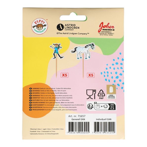 Picks med Pippimotiv för att dekorerar tex tårtor och muffins med.