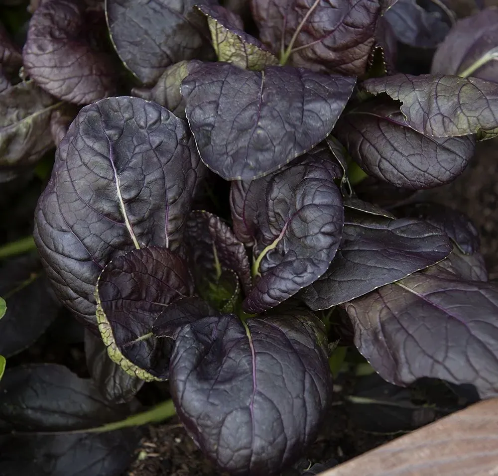 Djupt rubinröda blad med gröna, mjälla stjälkar i täta, fina bladrosetter. Mycket snabbväxande med lång skördetid. God och vitaminrik i sallader och wokrätter. Köldtålig. Kan även odlas inomhus året runt.
