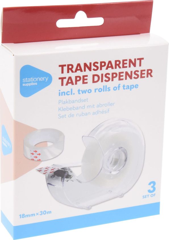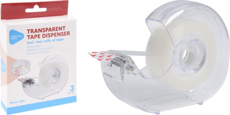 Praktisk tejphållare med medföljande rulle transparent tejp. Stabil och lättanvänd – perfekt för kontor, skola eller hemmabruk.