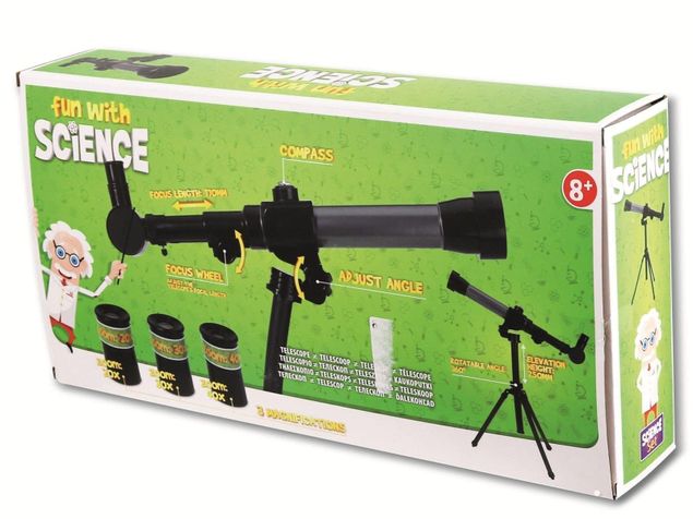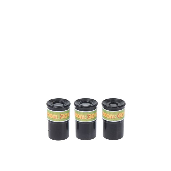 Teleskop med linser i tre olika styrkor (20x, 30x och 40x).