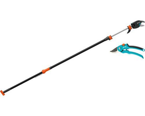 Gardenas Teleskopiska topp-och busksax StarCut 410 plus är specialisten på höga träd och buskar. Men sitt teleskopiska aluminiumskaft kan den förlängas steglöst från 230 till 410 cm. Det gör att du kan nå upp till 6,5 meter från marknivå. Med 12 ggr utväxling garanteras full kraft vid beskärning upp till 32 mm. StarCut 410 plus inkluderar även en robust krok som hjälper dig att få ner avklippta grenar från trädkronan, som annars lätt blir sittande och är svårt att få ner.