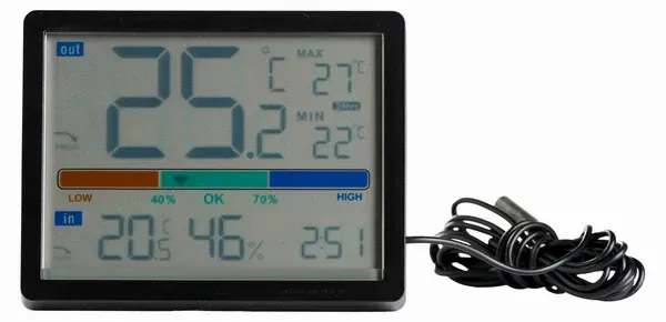 - Funktioner: Inomhus-/utomhustermometer, daglig min. ./max. temperaturer
