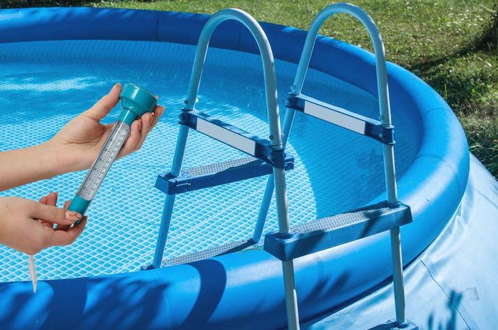 Flytande pooltermometer med snöre.