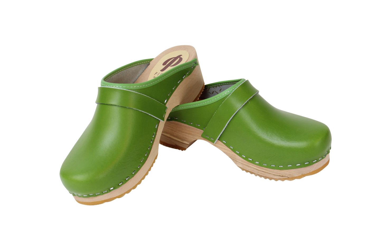 En vacker träsko med träbotten gjord av al och gummisula. Är lika praktisk som vacker och passar därför perfekt både hemma i trädgården och på stan.