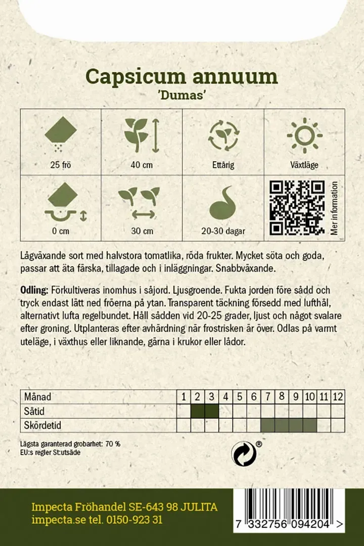 - Portionsmängd: 25 frö