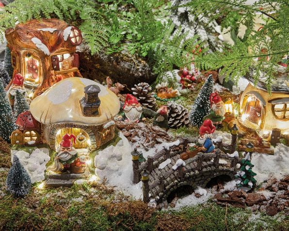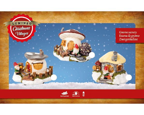Tomte i hus med LED . 3XAA Batteri ej inkl