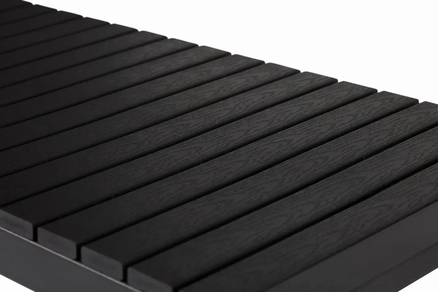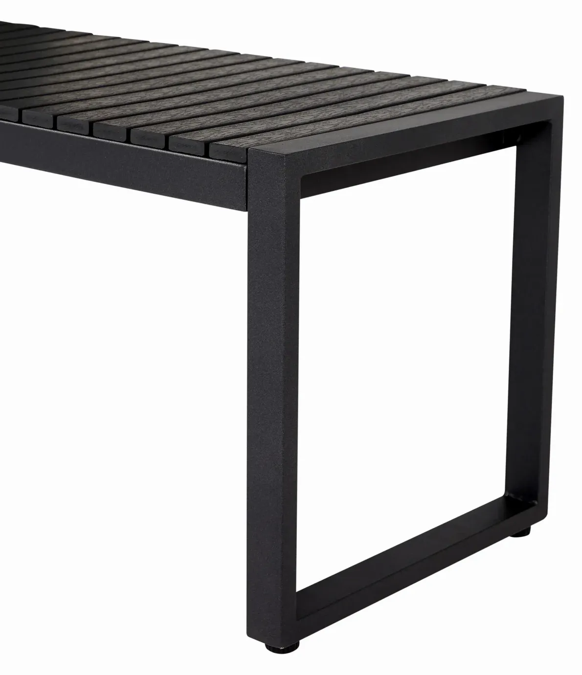 Polywooden ligger tvärs över metallen och har en fin furuliknande yta. Benen är uppbyggda av 2 rutor, vilket ger en stor stabilitet.