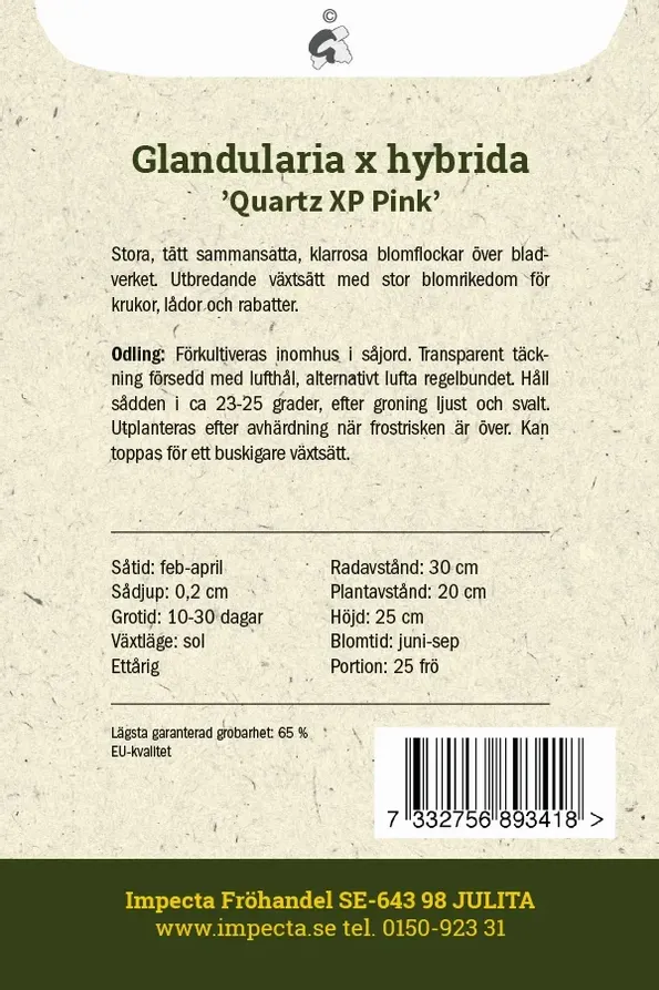Förkultiveras inomhus i såjord. Täck med klar plast försedd med lufthål. Håll sådden i ca 23-25 grader, efter groning ljust och svalt. Utplanteras efter avhärdning när frostrisken är över. Kan toppas för ett buskigare växtsätt.