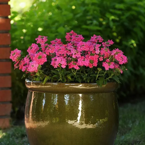 Stora, tätt sammansatta, klarrosa blomflockar över bladverket. Utbredande växtsätt med stor blomrikedom för krukor, lådor och rabatter.