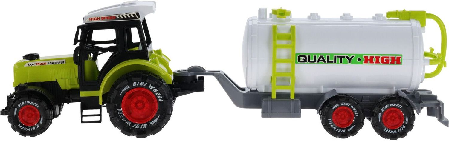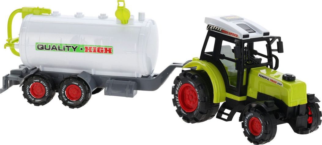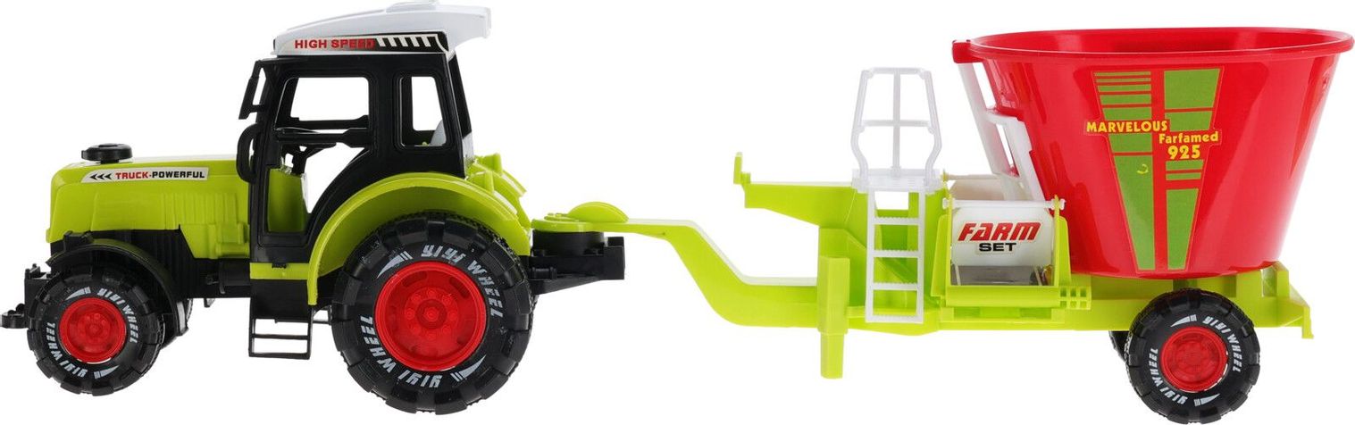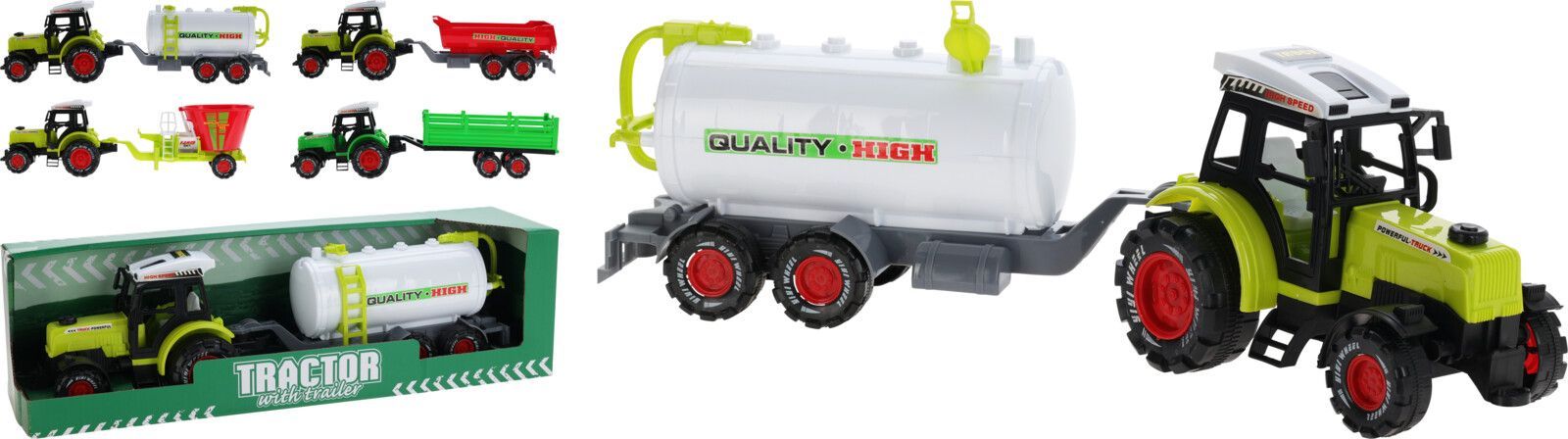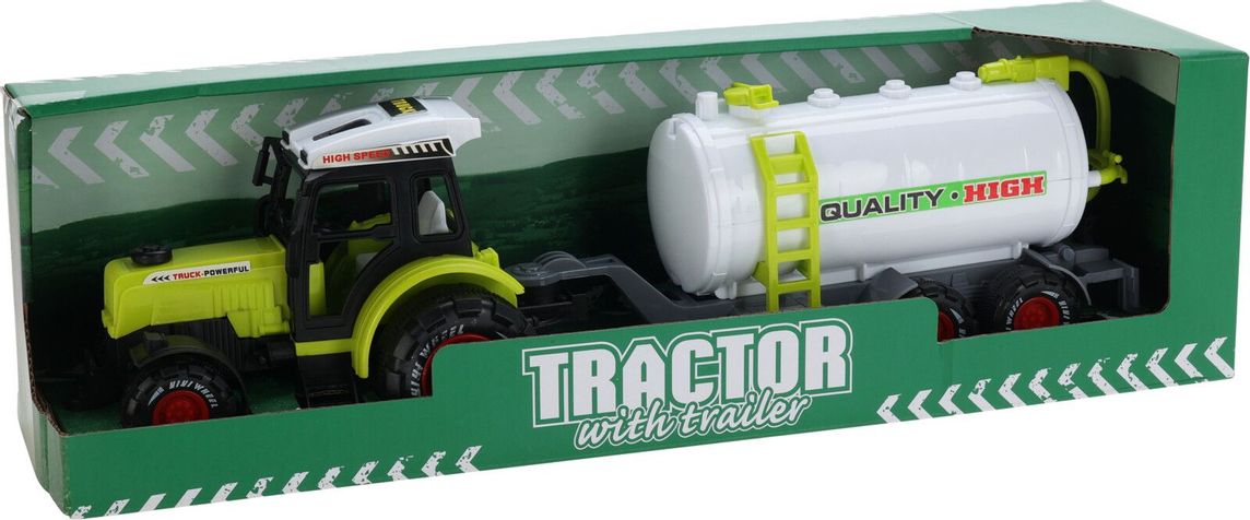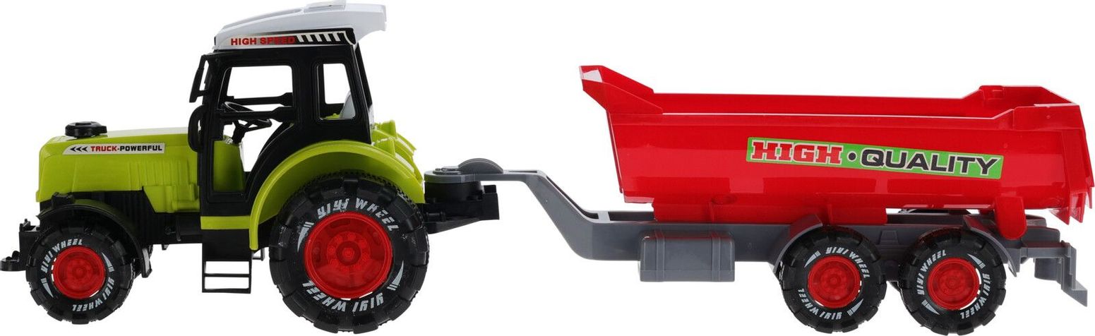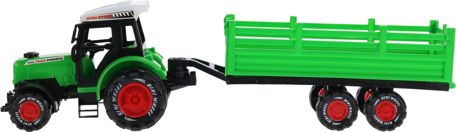 Robust och färgglad leksakstraktor med ett praktiskt släp – perfekt för timmar av fantasifull lek både inomhus och utomhus.