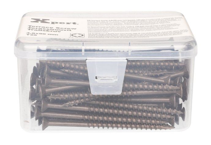 Skruv av Ruspert ytbehandlat stål C1022 för terrass och andra utomhuskonstruktioner.
