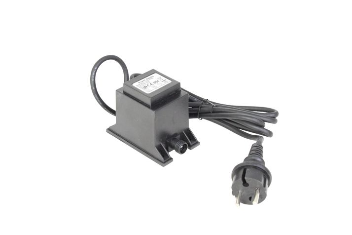Transformator 12 V, 30 W med 2 meter kabel. Används till pumpar, vattenspel, belysning mm. Framförallt för användning utomhus men fungerar lika bra inomhus. AC. INPUT: 230-240 Volt, 50 Hz. OUTPUT: 12 V, 2,5 Amp, 30VA (W). IP68.