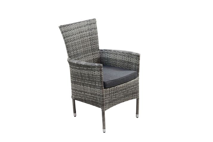 Fåtöljen har ett snyggt, välformat ryggstöd för bästa komfort och design. Dynor ingår i vattenavvisande mörk granitfärgad polyester.
