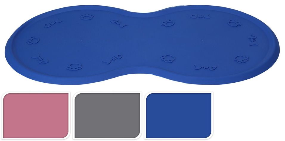 En praktisk gummimatta som förhindrar att mat och vatten hamnar på golvet och så att matskålen inte glider iväg.