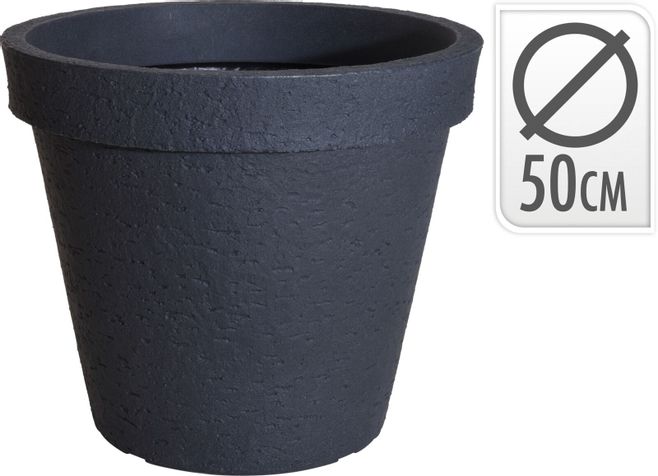 En stilren antracitgrå plastkruka med stenlook och matt finish.