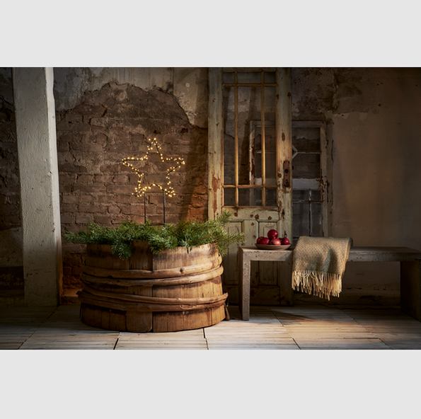Dekorationen har 100 LED-ljuspunkter med varmvitt sken.