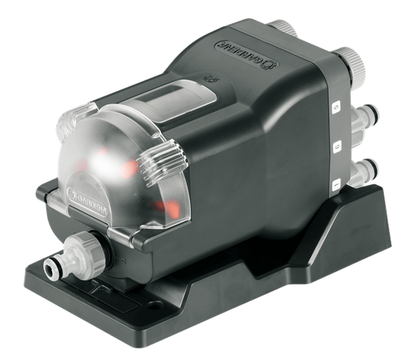 I kombination med en GARDENA Bevattningscomputer Master (1892-28), ser GARDENA Vattenfördelare automatic till att sex olika områden i trädgården bevattnas automatiskt och helt individuellt. Exempelvis kan du vattna gräsmattan med en sprinkler och sedan krukväxter, rabatter och blomlådor med ett droppbevattningssystem. Enligt programmeringen av vattendatorn öppnas vattenutgångarna automatiskt, en efter en.
