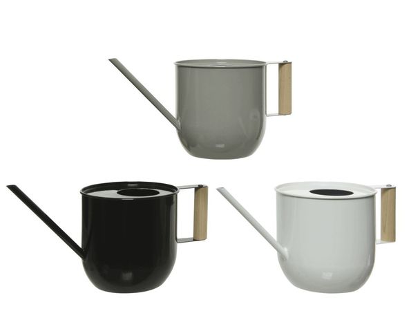 Stilren vattenkanna i galvaniserat stål och trähandtag i ek.