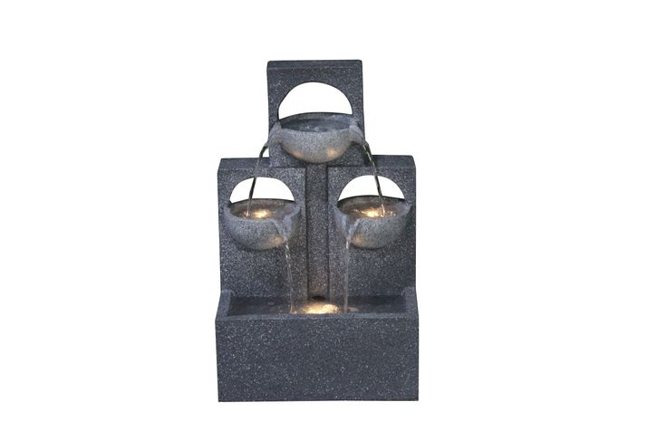 Vattenspel i stenimitation, tillverkad i glasfiber och natursten. Levereras komplett, med ledlampor och pump. Mycket enkel inkoppling. Slang och lampor är fördraget. Bör förvaras frostfritt under vintertid. Produktstorlek: 32x20x50 cm