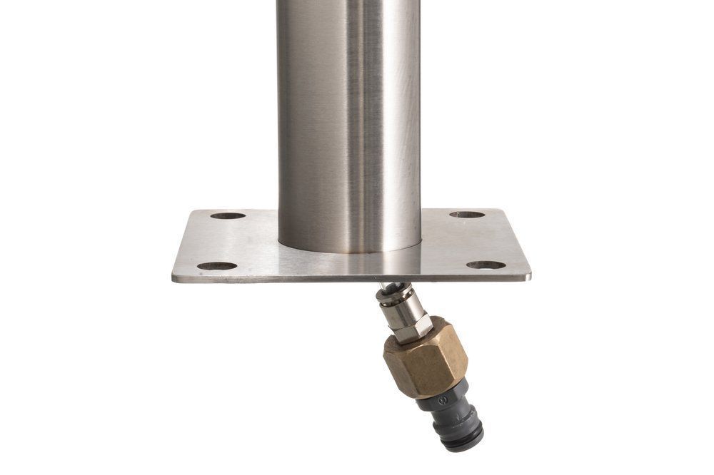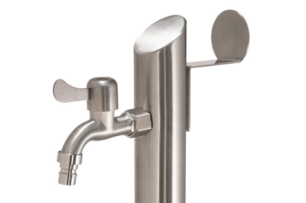 Rostfritt vattenutkastare. Snygg och praktisk för vattning av blommor, handtvätt etc. i trädgården. Det finns ett inlopp för vattenslangar i botten, så slangen syns inte och du får ett snyggt resultat för till exempel terrassinstallation.