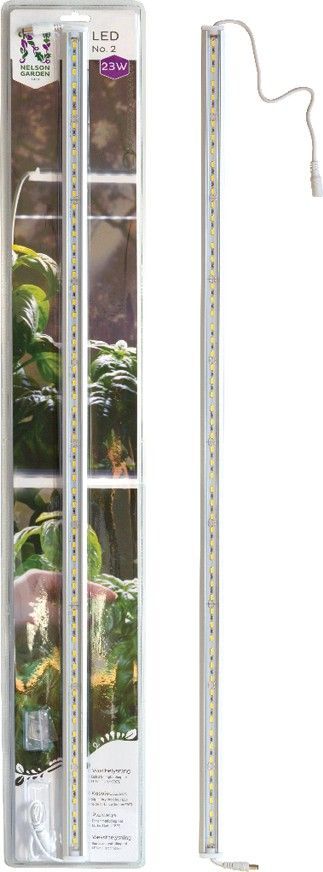 Energisnål LED-ramp utan adapter. Endast för ihopkoppling med LED No.1 (art.nr 5567). Passar vid förodling och som extraljus vid odling inomhus. Längd 85 cm, 23 W, 230 V, 6400 K, nominellt ljusflöde 2200 lumen, nominell brinntid 35000 h, PPFD (100 mm) 141 µmol/s/m².