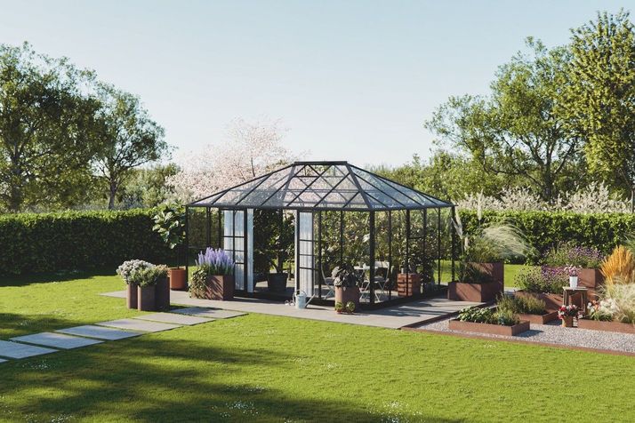 Växthus Astilbe 19,05 kvm är ett extremt stabilt och väldigt prisvärt växthus tillverkat i svart pulverlackerad aluminium. Passar utmärkt för dig som önskar gott om plats för att odla eller umgås. Växthuset är utrustat med kraftiga låsbara dubbeldörrar med en dörröppning på 139 cm, även dessa tillverkade av aluminium.