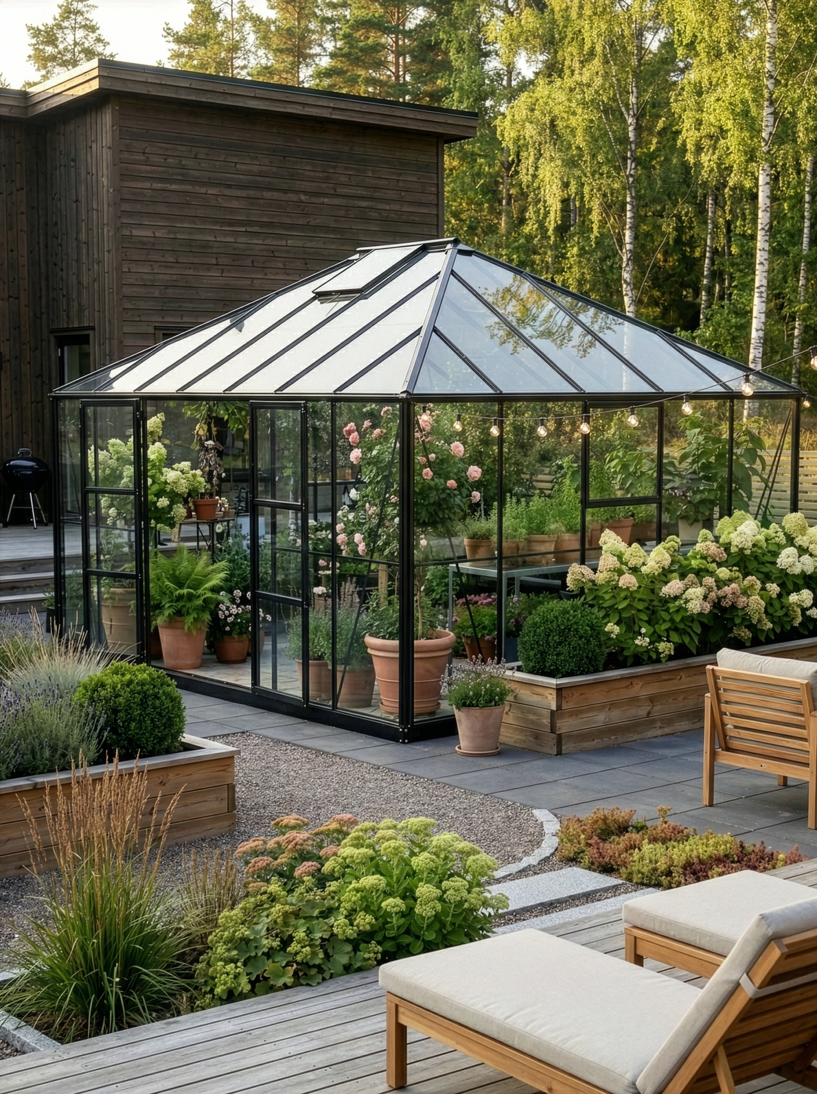 Astilbe är utrustat med fyra öppningsbara takfönster, två i taket och två på kortsidorna bästa möjliga ventilation. Fönsterna i taket går att förse med automatisk lucköppnare som tillval.