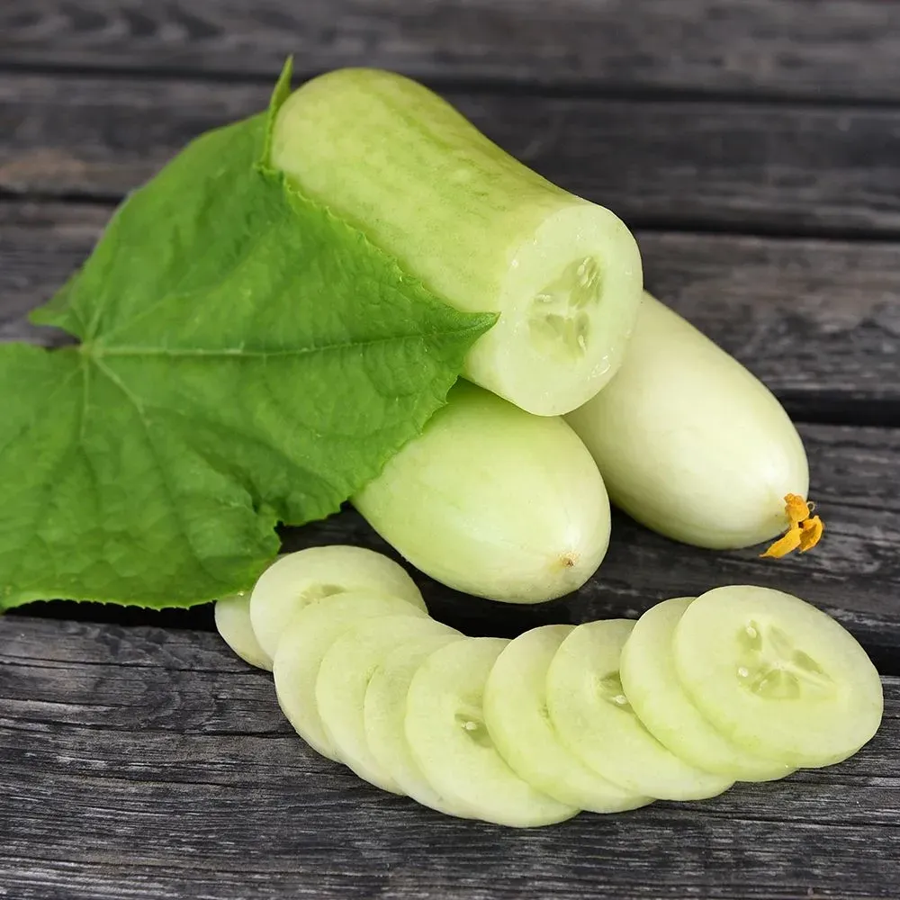 Partenokarp (självbefruktande). Små, fina slanggurkor, utsökt krispiga och goda. Skalet är extremt tunt och nästan genomskinligt vilket ger gurkan ett ljust, nästan vitt utseende. Skördas ca 16 cm långa. Odlas i växthus eller på varma utelägen.