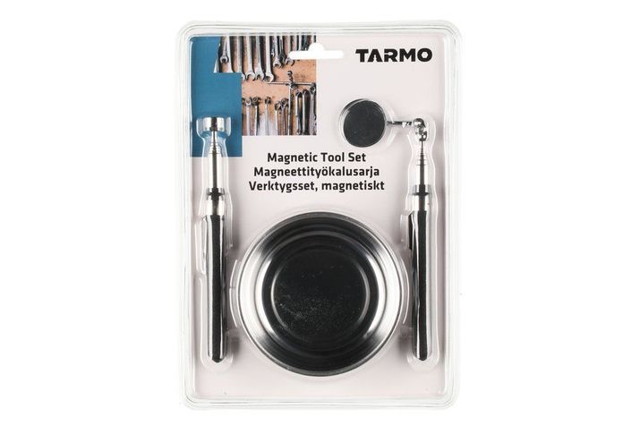 Inkluderar en magnetisk skål (diameter 10 cm), ett magnetiskt pickupverktyg med teleskoparm (15-85 cm) och en spegel med teleskoparm (15-85 cm).