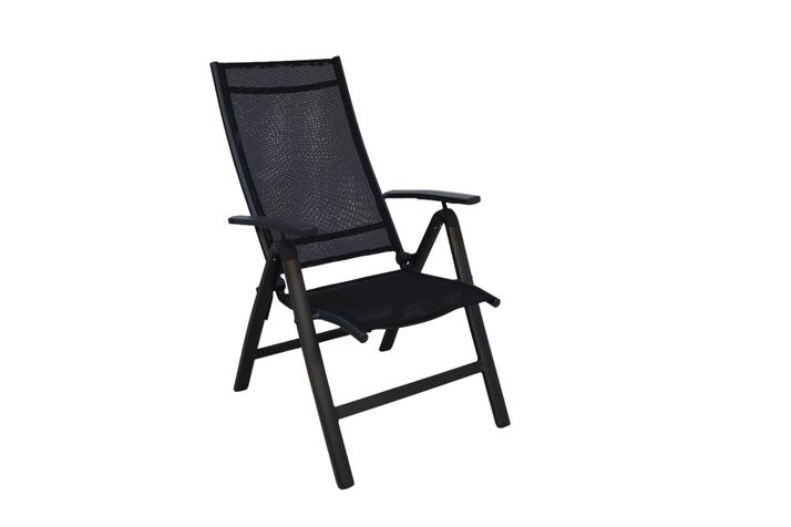 Snygg och bekväm positionsstol tillverkad av svart pulverlackerad aluminium med sits och rygg i textilene.