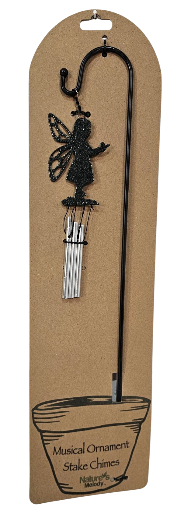 Rart litet vindspel med en älva. En pinne för upphängning medföljer så det passar utmärkt som dekoration i blomkruka.