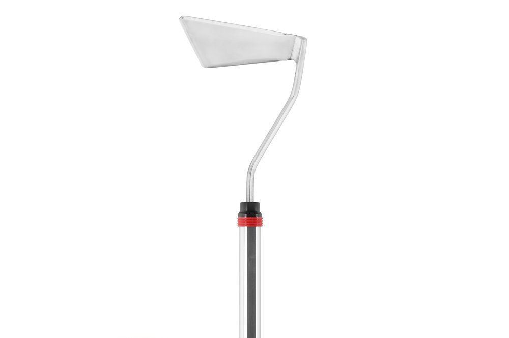 Vinkelhacka för ogräsrensning. Bladet, som är slipat på tre sidor, är särskilt lämpligt för trånga utrymmen och för att arbeta runt stjälkar.