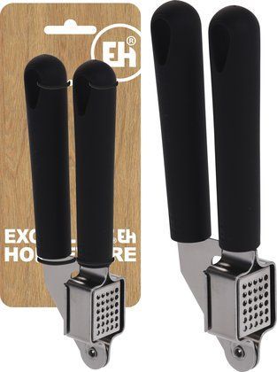 Vitlökspress i rostfritt stål med greppvänligt handtag i plast.