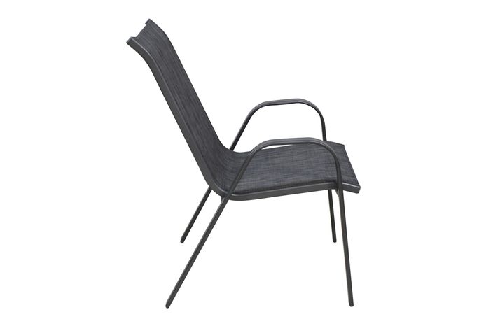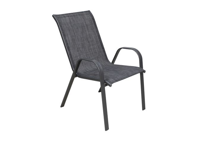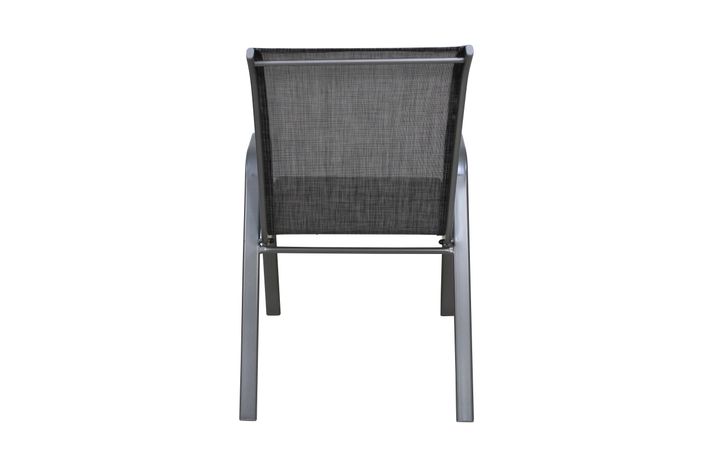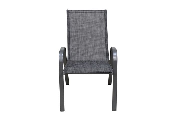 Enkel och snygg karmstol i antracitgrå stål, klädd med granitfärgad slitstark textilene.