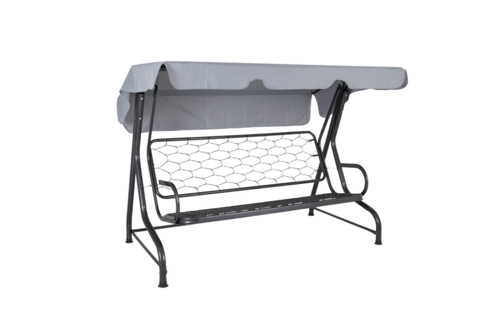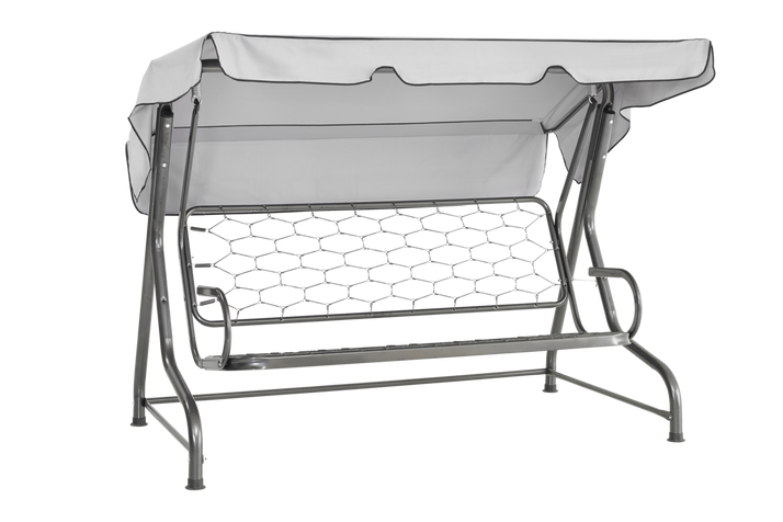 Lyxhammocken Wien har hög rygg och grova rör i benställningen. Stativet som är förzinkat och epoxylackerat finns i antracit med måtten 205×108 cm, höjd 153 cm. Passande dyna (Softa) och tak (Olbia) säljs separat.