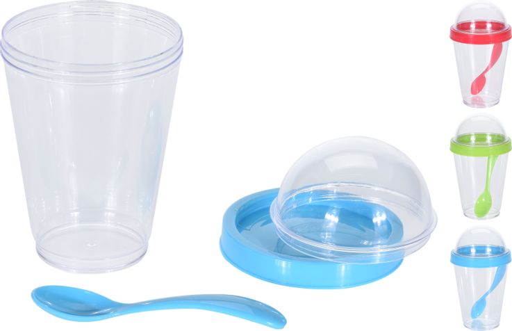 En smidig och praktisk mugg med lock och sked som passar utmärkt till yoghurt, snacks eller smoothies. Perfekt att ta med på språng eller njuta av hemma.
