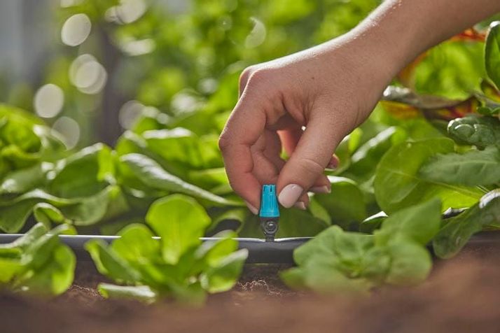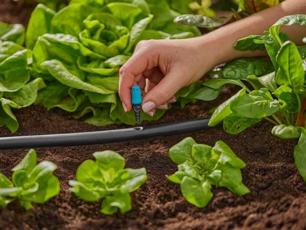 Använd ytspridaren från GARDENA för att vattna små rabatter eller planteringsområden med sallader och plantor. Innan du vattnar dina växter kan du ställa in vattenradien för Micro-Drip-komponenten individuellt mellan 10 och 40 cm.